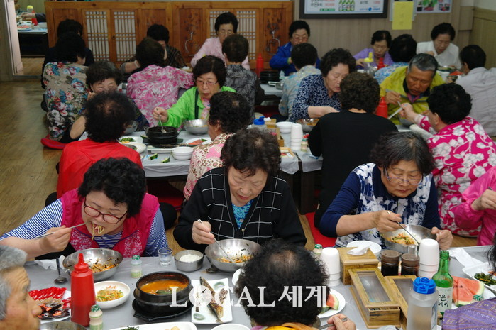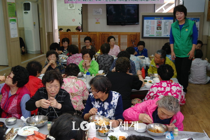[로컬세계 맹화찬 기자]부산 남구 문현3동 새마을부녀회(회장 정귀분)는 8일 12시 관내 한산도횟집에서 홀로계신 어르신 70여 명을 모시고 ‘효도상 차려드리기’ 행사를 열어 점심과 기념품을 전달했다. 이날 새마을금고에서도 타월100여 장을 제공했다.