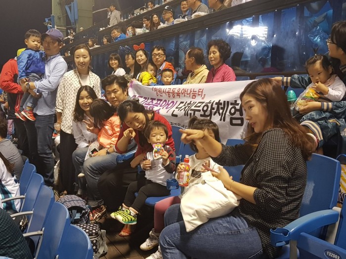 | ▲모두가족품앗이에 참석한 가족들이 마산야구장에서 NC 야구경기를 관람하며 즐거워하고 있다.(사진제공=창원시) |
