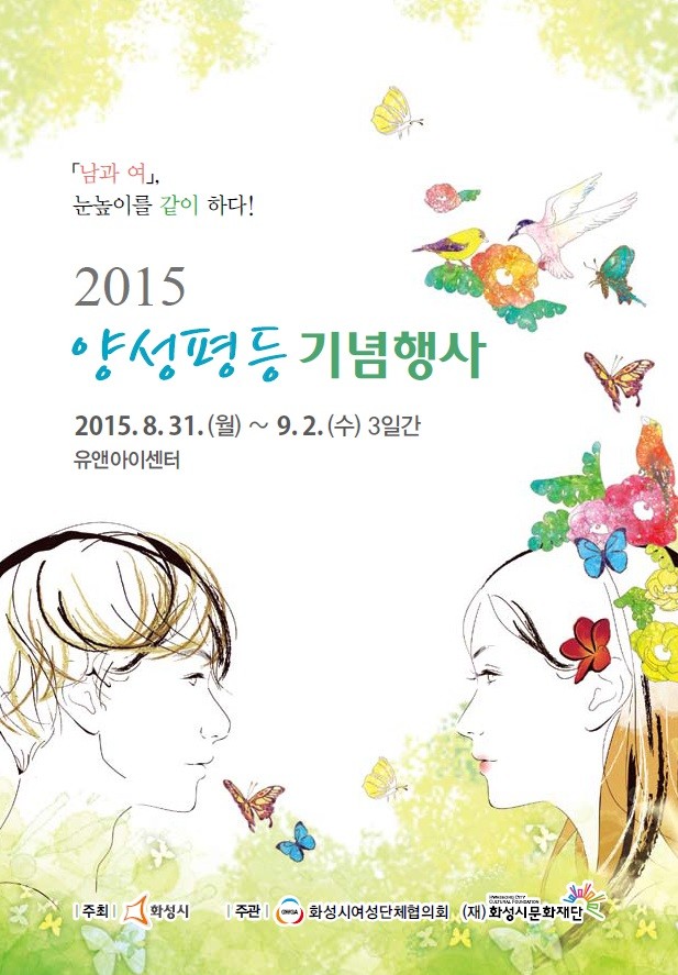 [로컬세계 최원만 기자]경기 화성시는 ‘남과 여, 눈높이를 같이하다!’라는 주제로 오는 31일부터 9월 2일까지 유앤아이센터에서 ‘2015 양성평등 기념행사’를 개최한다.