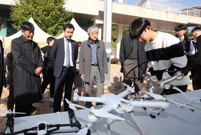 | ▲창의지성교육 한마당에서 드론 학생 동아리가 시연하는 모습. |