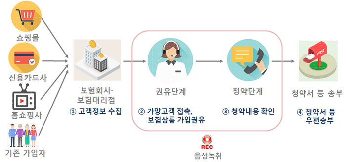 ▲보험상품 전화가입(TM) 절차.(금융위 제공) |