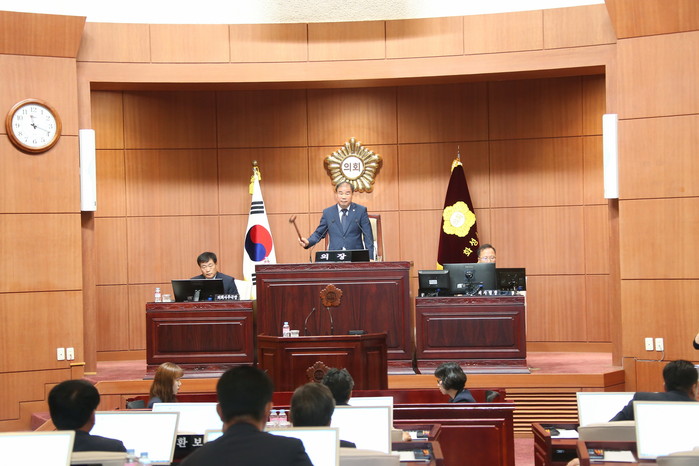 김정주 의장은 개회사를 통해 “지난 제19대 대통령 선거를 그 어느 때보다 공명선거로 치를 수 있게 노력하여 주신 동료 의원, 채인석 시장을 비롯한 공직자 여러분께 감사와 격려의 말씀”을 전하며 “화성시 미래의 운명을 결정하게 될 중요한 안건들을 처리하면서 공익을 우선시 하고, 실효성 있고 내실 있는 안건 심의가 될 수 있도록 열과 성을 다해 줄 것”을 당부했다.