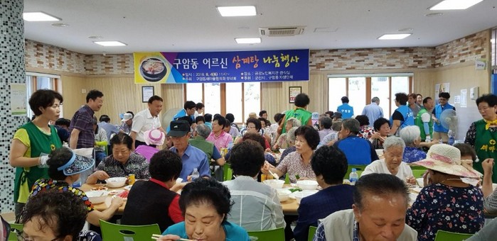 송영애 구암동 새마을부녀회장은 “이번 행사를 통해 더위에 지친 어르신들이 기력을 회복하시는데 조금이나마 도움이 되기를 바란다”며 “지역 주민과 늘 함께하는 새마을부녀회가 될 수 있도록 이웃사랑을 실천하는 활동을 지속적으로 추진해 나가겠다”고 말했다.