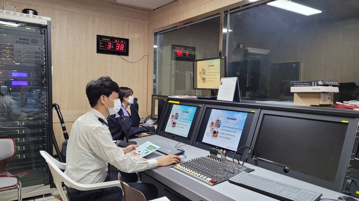 이날 코로나19 거리두기 속 학생과의 접촉을 최소화하기 위해 교내 방송실을 활용하여 실시간 비대면 교육을 진행했다.