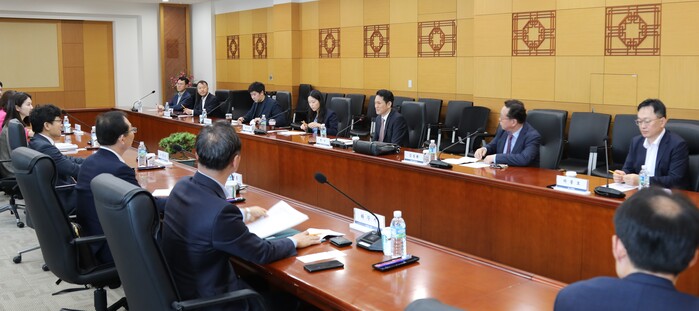 ▲ 한민 관세청 심사국장(가운데)이 26일 서울세관에서 개최한 '특수관계자 간 과세가격 사전심사 대리인 간담회'에서 참석자의 의견을 청취하고 있다. 관세청 제공 |