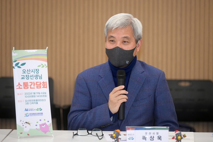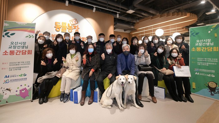 [로컬세계 김병민 기자]곽상욱 오산시장은 19일 관내 전체 42개교 초‧중‧고 교장선생님들이 참석한 가운데 새로 문을 연 오산반려동물테마파크에서 2022년 오산시 미래교육을 위한 소통 간담회를 진행했다.