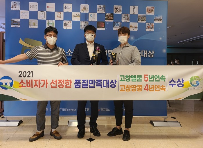 2일 고창군에 따르면 지난 1일 서울코리아나호텔에서 열린 ‘2021 소비자가 선정한 품질만족 대상’ 시상식에서 고창의 멜론과 땅콩이 지역 농산물 부문 대상을 수상했다. 멜론은 5년 연속, 땅콩은 4년 연속 수상으로 ‘한반도 농생명 수도’의 가치를 드높였다.