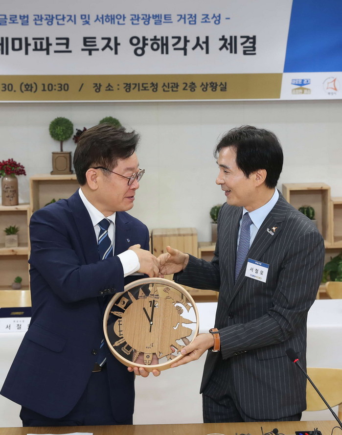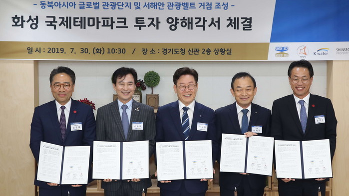 이와 관련, 이재명 경기도지사와 서철모 화성시장, 이학수 한국수자원공사 사장, 임영록 신세계프라퍼티 대표, 윤명규 신세계건설 대표는 30일 경기도청에서 ‘화성 국제테마파크 조성을 위한 투자 양해각서’를 체결했다.