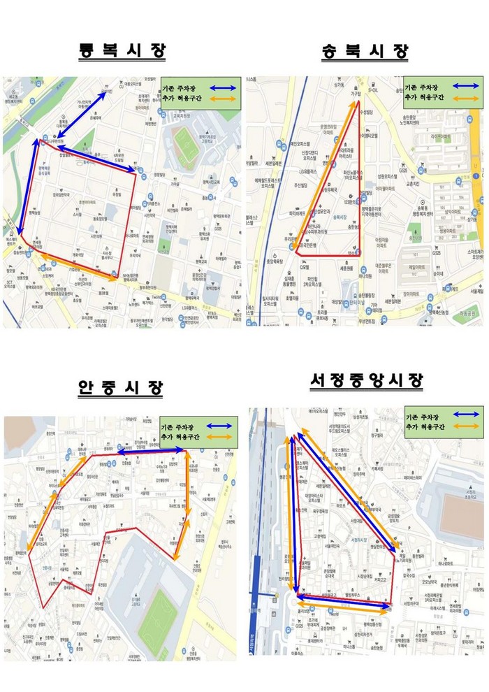유예기간에는 차량소통이 원활하도록 계도위주로 지도・단속할 계획이며 민원발생 및 2열 주차, 허용구간 외 주차 등 질서문란・장시간 주차차량에 대해서는 이동조치, 과태료 부과 등으로 주차질서 준수를 유도할 계획이다.
