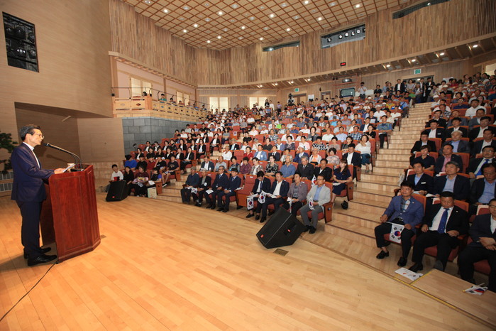 ▲유기상 군수가 제74주년 광복절 맞아 경축식에서 축사를 하고 있다.(고창군 제공) |