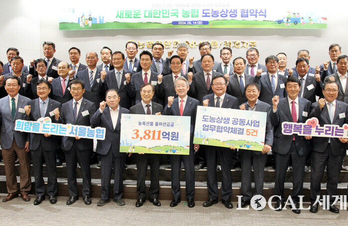 서울농협은 14일 농협중앙회 서울본부 2층 대강당에서 강호동 농협중앙회장, 서울·산지농협 조합장 등 100여명이 참석한 가운데『새로운 대한민국 농협 도농상생 협약식』을 개최했다.