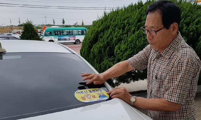 | ▲어르신 운전차량 스티커.(평택시 제공) |