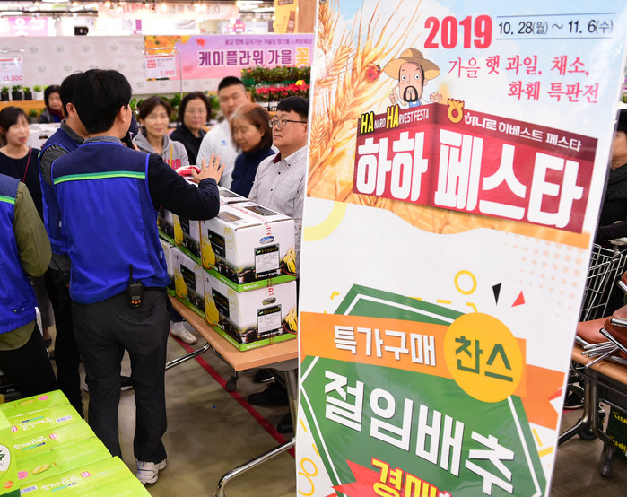 ▲서울 서초구 농협유통 하나로마트 양재점에서 수확철 고객과 기쁨을 나누고자 하나로마트 양재점에서 ‘하하 페스타’를 11월 6일까지 개최한다. |