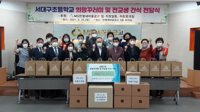 [로컬세계 박세환 기자]대구 서구 비산7동 만평새마을금고는 지난 25일 관내 서대구초등학교 저소득가정에 희망꾸러미와 전교생에 간식을 전달하는 뜻 깊은 시간을 가졌다.