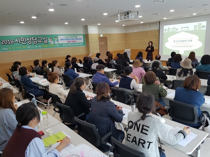| ▲2018 시민상담교실 참가자들이 교육을 듣고 있다.(창원시 제공) |