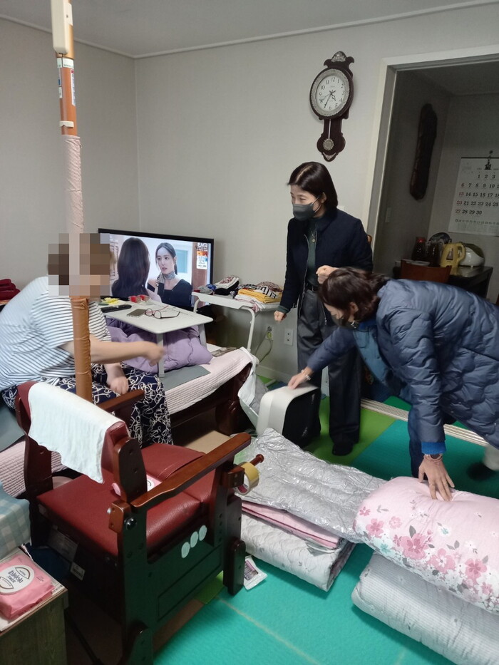 A씨는 “병원에서 생활하며 갈 곳이 없어 답답했는데, 퇴원 후 안락한 집을 마련해주고 이렇게 이불과 히터를 지원해줘 너무 감사드린다”며 고마움을 표현했다.