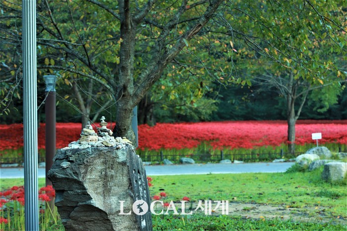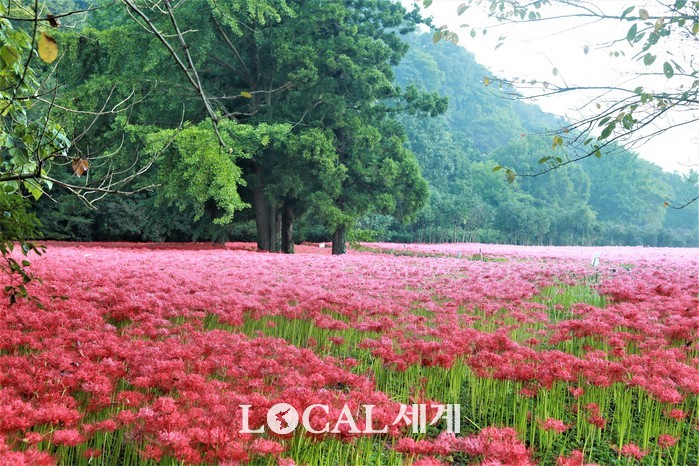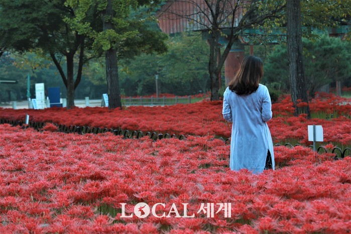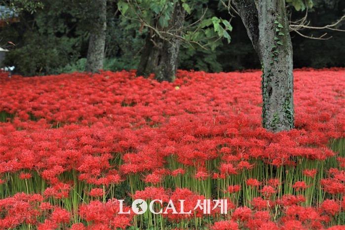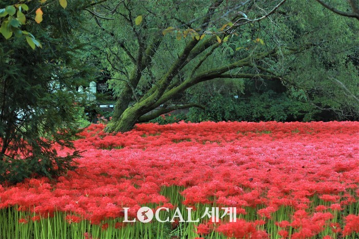 [로컬세계 김경락 기자]바라볼수록 뜨겁게 돋아나는 열정과 그리움. 선운산 계곡 깊숙이 레드카펫이 깔렸다. 가느다란 꽃줄기 위로 여러 장의 빨간 꽃잎이 한데 모여 말아 올린 자태가 빨간 우산을 펼친 것만 같다. 살펴주는 이 아무도 없어도 꽃들은 수수하게 잘도 피었다.