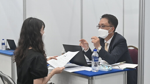 ▲채용 면접 참여자와 취업준비생 채용 상담 및 면접을 진행하고 있다. 경남도 제공 |