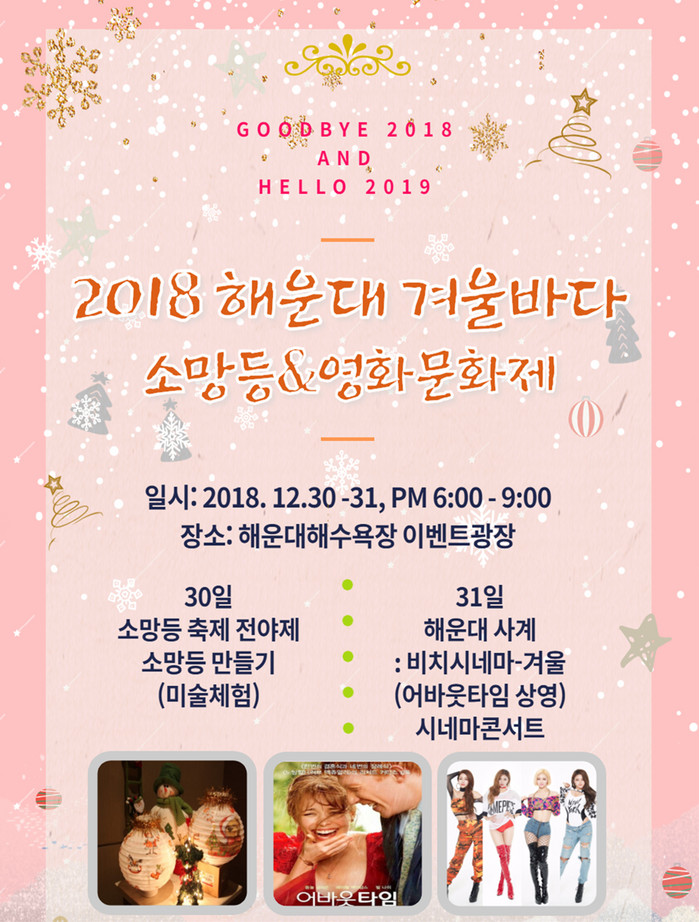 [로컬세계 맹화찬 기자]부산 해운대구는 오는 30~31일 해운대해수욕장에서 2019년 새해를 맞이하는 송구영신 행사로 ‘해운대 겨울바다 소망등&영화문화제’를 개최한다고 28일 밝혔다.