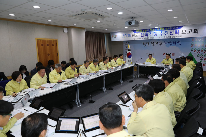의성군은 18일 각 부서장이 참석한 가운데 김주수 군수 주재로 ‘2019년 지방재정 신속집행 추진전략 보고회’를 개최하고 올해 신속집행대상(3498억원)의 70%인 2448억원을 올 상반기 안에 집행하기로 했다고 19일 밝혔다.