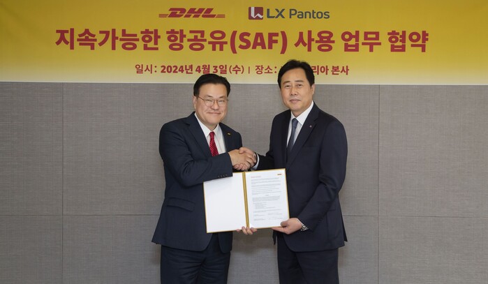 [로컬세계 = 마나미 기자] 세계적인 국제특송기업 DHL코리아(대표 한지헌)가 대한민국 대표 글로벌 종합물류기업 LX판토스와 지속가능한 항공유(Sustainable Aviation Fuel, 이하 SAF) 사용을 통해 탄소 배출을 줄일 수 있는 ‘고그린 플러스(GoGreen Plus)’ 서비스 이용 업무협약을 체결했다고 5일 밝혔다