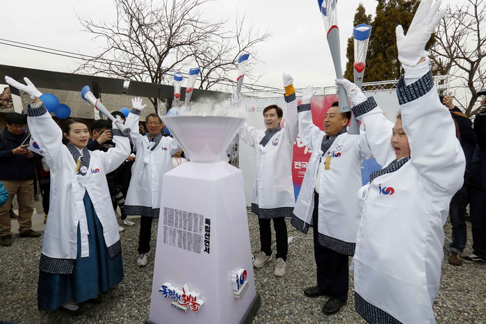 | ▲6일 열린 화성 3.1운동 만세길 개통식과 함께 진행된 국가보훈처 주관 독립의 횃불 행사 세리머니 모습. |