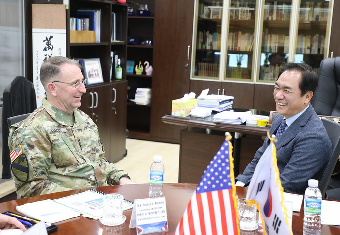 [로컬세계 고용주 기자]정장선 평택시장은 지난 28일 주한미군사령관으로 처음으로 평택시를 방문한 에이브람스 주한미군사령관과 한미협력강화 방안에 대해 논의했다.