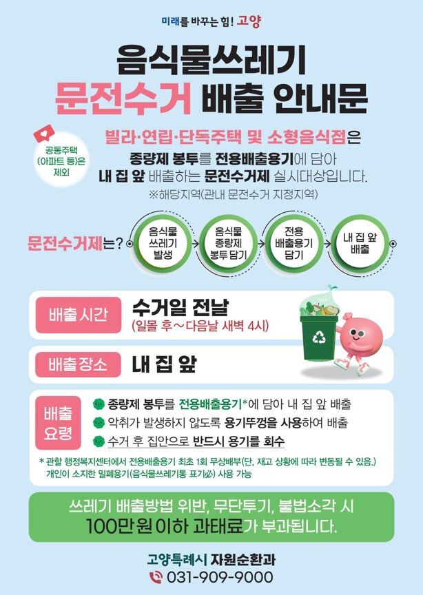 ▲ 음식물쓰레기 문전수거 배출 안내문.(고양시 제공) |