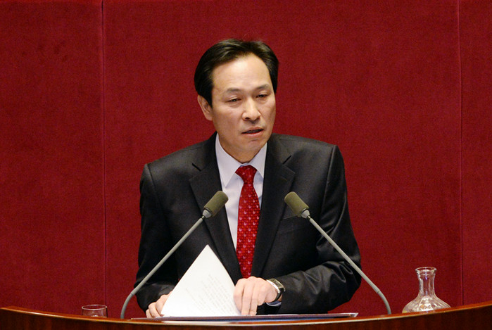 ▲우상호 더불어민주당 원내대표가 2일 국회 본회의장에서 교섭단체 대표연설을 하고 있다. 더불어민주당 제공. |