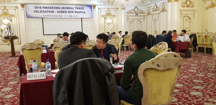 | ▲지난해 우즈베키스탄 시장개척단 메탈링크 상담 사진.(화성시 제공) |