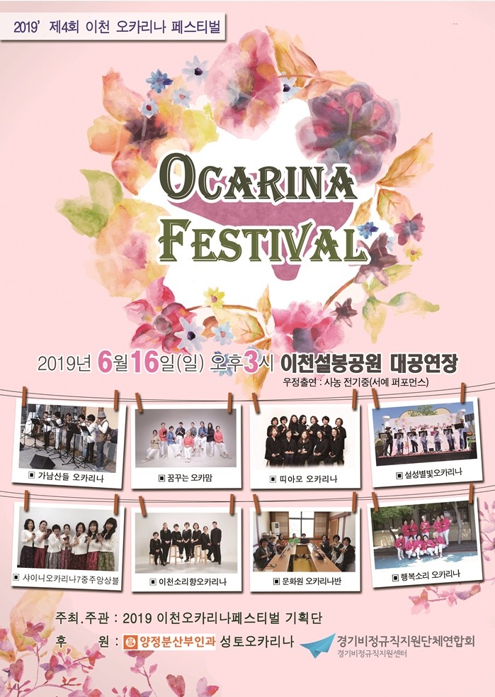 2019 이천 오카리나 페스티벌 기획단이 주최·주관하고, 경기도가 후원하는 이번 페스티벌은 자조모임 활동을 통해 도내 비정규직과 경력단절여성들에게 자신감과 희망을 키우는데 목적을 뒀다.