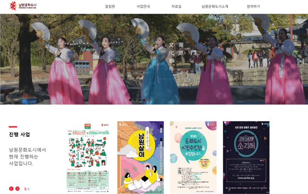 이번에 오픈한 홈페이지는 PC와 모바일에서 이용할 수 있으며, 그동안 SNS와 유튜브를 통해 접할 수 있었던 남원문화도시의 정보들을 쉽게 찾을 수 있도록 제작했다.