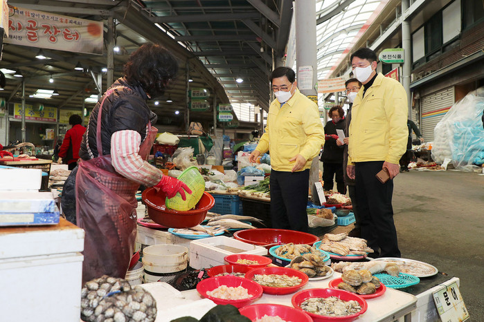 또한 코로나19 확산과 거리두기 수칙 강화로 인해 어려움을 겪고 있는 전통시장 소상공인들의 애로사항을 청취하고 지원정책을 안내하는 한편, 증축공사 중인 공영주차장 현장을 찾아 안전실태를 점검하고 조속한 사업 추진을 당부했다.