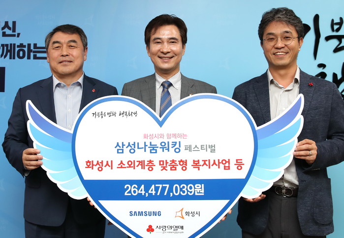[로컬세계 고용주 기자]삼성전자 DS부문이 지난해 ‘화성시와 함께하는 삼성나눔워킹 페스티벌’에서 조성된 복지기금 2억6400여 만원을 전달했다.