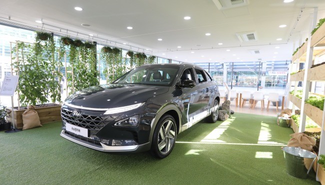 ▲수소전기하우스 시즌 2 그린 존에 마련된 수소전기차로부터 배출된 깨끗한 물로 재배한 식물들이 자라고 있는 라이브 팜.(현대자동차 제공) |