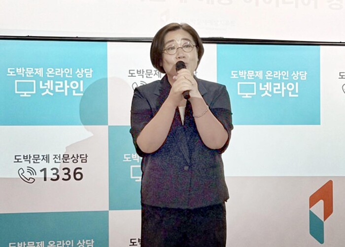 ▲한국도박문제예방치유원이 주최한 ‘2024년 청소년·청년 도박문제 예방 아이디어 경진대회’가 지난 9일 예방치유원 교육실에서 성황리에 개최되었다. 신미경 원장이 인사말을 하고 있다. |