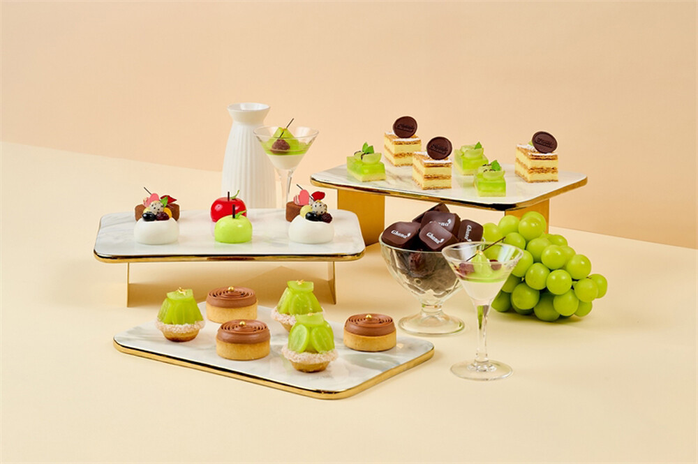 롯데호텔 서울은 인기 제철 과일인 샤인머스캣을 활용한 디저트 뷔페를 연다. ‘페닌슐라 라운지 앤 바’에서 롯데웰푸드 가나초콜릿의 상위 브랜드 ‘프리미엄 가나’와 함께 다양한 메뉴를 준비했다. 웰컴 디쉬로 제공되는 샤인머스캣을 비롯해 크림 타르트, 프리미엄 샤인머스캣 케이크, 밀푀유 등 30여 종의 디저트와 핫디쉬 9종, 커피 또는 티 등을 맛볼 수 있다.