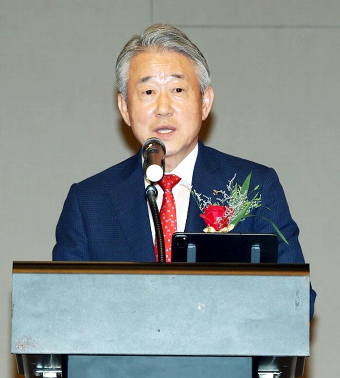▲농협중앙회 강호동 회장이 농축협 전국후계농업경영인조합장협의회 워크숍에서 축사를 하고 있다. 농협 제공 |