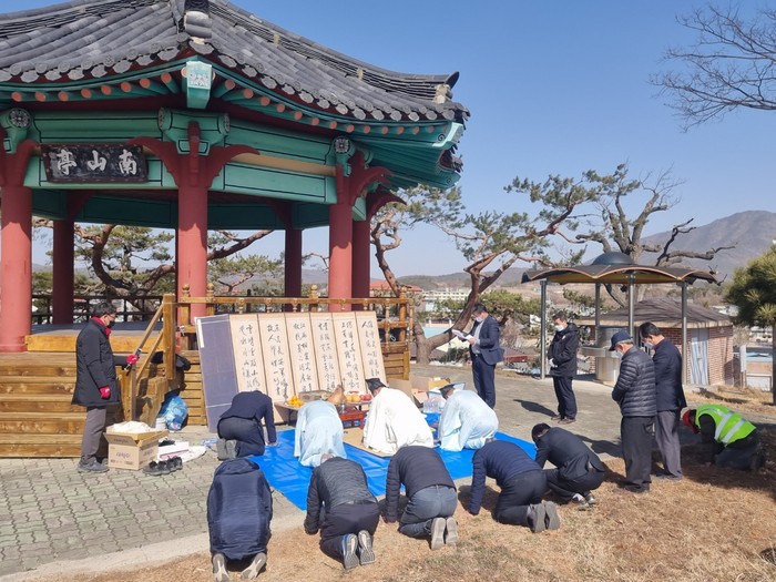 [로컬세계 박상진 기자]경북 의성군 다인면 경칩회(회장 이광휘)는 지난 5일 경칩일을 맞아 다인면 서릉리 소재 남산팔각정에서 면민의 안녕과 풍년을 기원하는 '면태민안 기복제'를 개최했다고 10일 밝혔다.