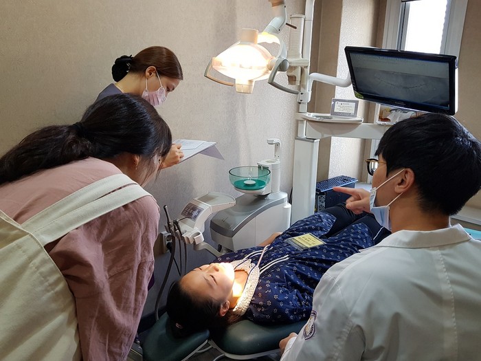 이들은 17일 원광대학교치과병원, EL치과병원, 이안과병원, AK플란트치과의원, 플랜트치과의원, 워싱턴치과의원 등 6개 의료기관에서 치과 및 안과 건강검진을 받고 유성족욕체험장을 체험했다.
