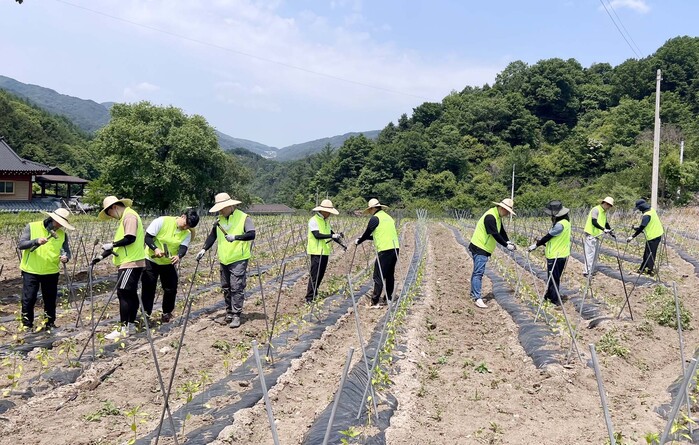 이 날 봉사활동은 농협물류 임직원 20여명이 참여하였으며, 인제농협 관내농가에서 고추 지주대 작업 및 마을 환경정비에 힘을 보태며 구슬땀을 흘렸다.