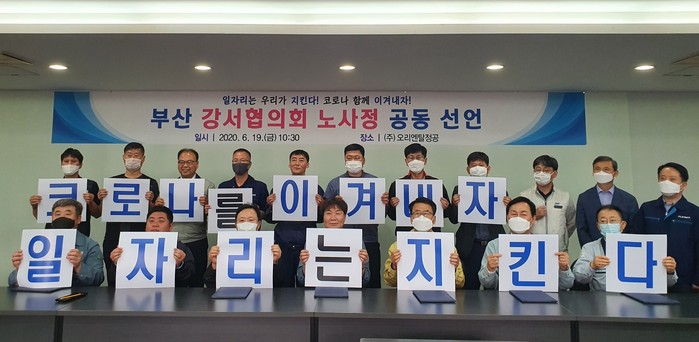 [로컬세계 맹화찬 기자]부산 강서구 녹산국가산업단지 및 인근 산단에 입주해 있는 9개 노사 대표와 고용노동부 부산북부지청은 19일 “고용유지 공동선언문”을 채택하고 실천을 다짐했다.