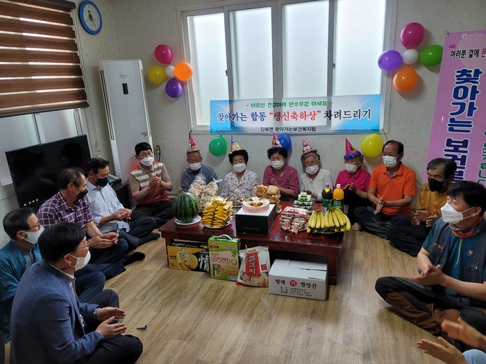 코로나로 외로움이 더 짙어진 어르신들을 위해 단북면은 지난 15일 효제1리 경로당에서‘생신축하상 차려드리기’를 진행했으며, 해당 행사는 효제1리를 시작으로 단북면 23개 경로당에 방문해 순차적으로 진행할 예정이다.