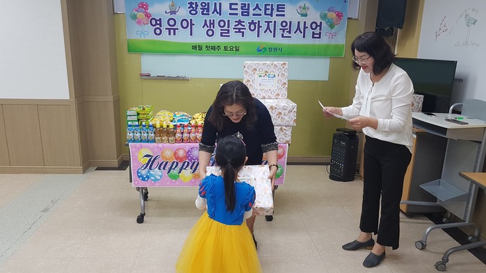 | ▲영유아 생일축하사업 진행 광경.(창원시 제공) |