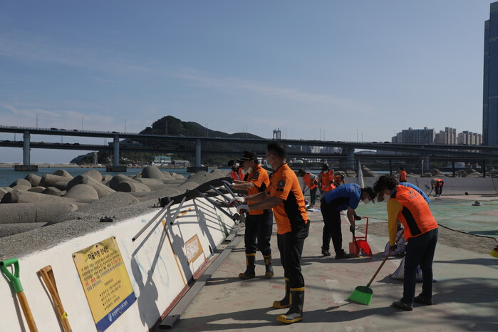 또 해안 산책로 정화활동과 파손된 시설물에 대해 안전조치를 하는 등 시민들의 안전 확보와 지역 사회의 신속한 일상 회복을 위한 피해 복구 활동에 힘을 보태며 구슬땀을 흘렸다.