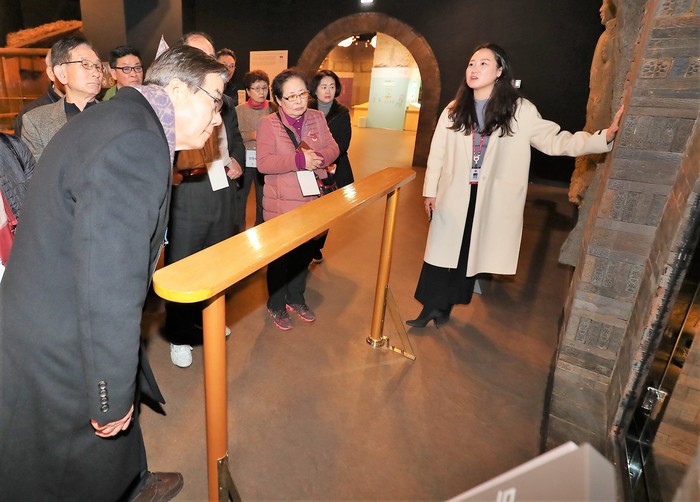 [로컬세계 길도원 기자]27일 롯데월드(대표 박동기)의 초청행사에 초대된 30여 명의 독립유공자 후손과 가족들이 롯데월드 민속박물관을 방문해 학예사의 설명을 들으며 전시물을 관람하고 있다.