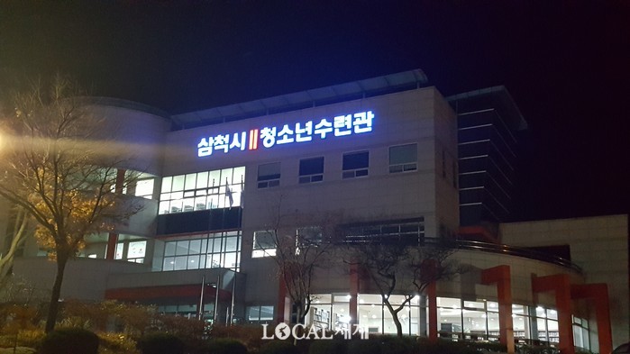 ▲삼척시 청소년수련관 야간 전경. 김재덕기자. |