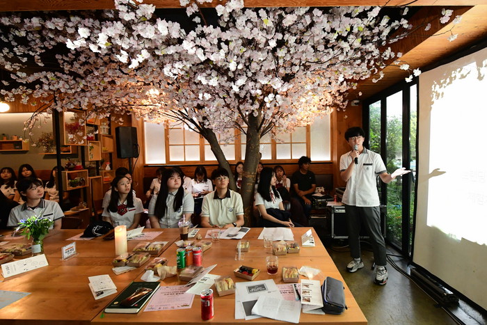 | ▲노작마을 살리기 프로젝트에 참여한 학생이 발표하고 있는 모습. |