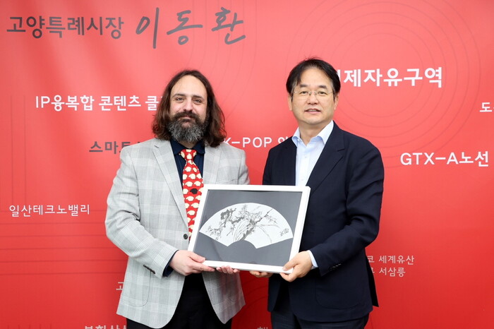 ▲ 이동환 고양특례시장(우), 에이던 루시언 폭스(Athan Lucian Fox) 박사. 고양시 제공 |