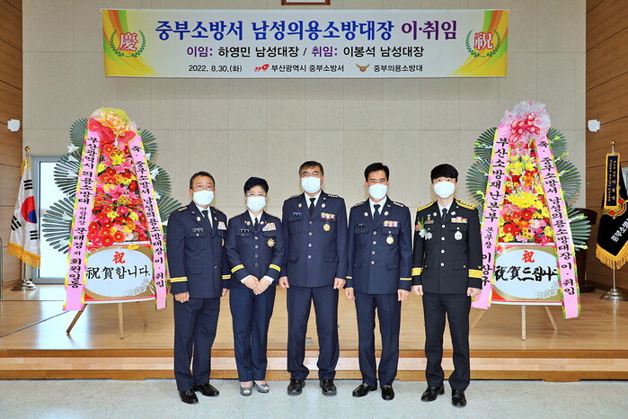 [로컬세계 부산=맹화찬 기자]부산중부소방서는 ” 30일 3시 본서 강당에서 관내 주요기관장, 16개대 지역대장 및 직원들이 참석한 가운데 중부소방서 남성의용소방대장 이·취임식을 가졌다“고 밝혔다.